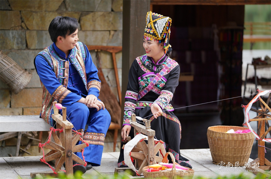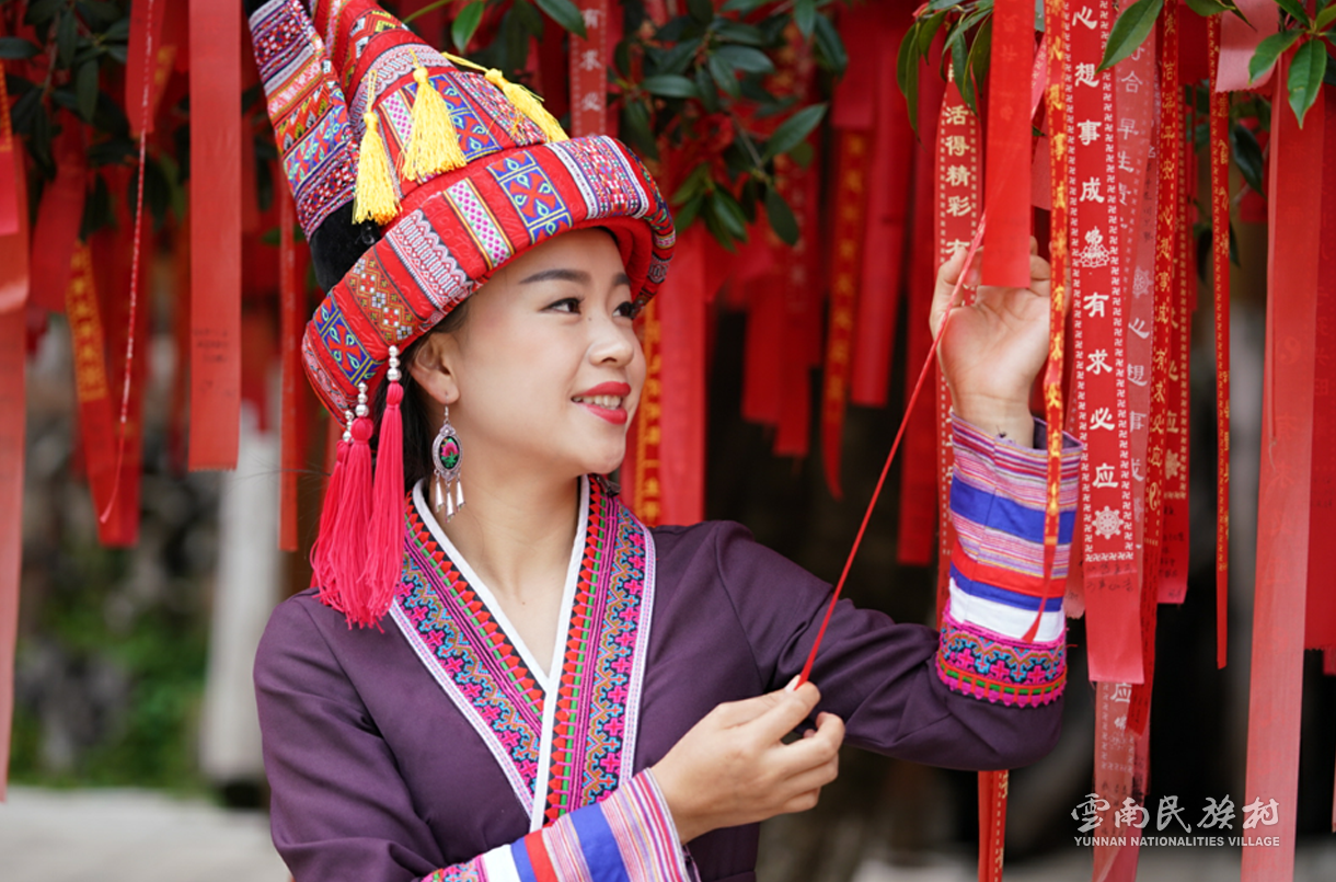 彝族在云南境內(nèi)約471萬人,是省內(nèi)人口最多、分布最廣的少數(shù)民族,主要聚居在金沙江、元江流域和哀牢山、無量山腹地。彝族是一個能歌善舞的民族,民間打歌、跳樂之風(fēng)盛行,大三弦、跌腳舞久負(fù)盛名。火把節(jié)是彝族最具特色的民族節(jié)日。彝族村占地50余畝,三虎浮雕墻與虎頭內(nèi)祖師形象表現(xiàn)了彝族虎鷹文化。太陽歷廣場圖騰柱上有太陽、虎、火和八卦圖形象,周圍環(huán)繞著10個朝向不同的月球造型,外圓周有12生肖石雕。依山而建的“...